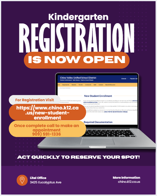 Litel Lion Cubs born January-September 1st, 2021, can now register for the 2026-2027 school year. Complete the online enrollment https://www.chino.k12.ca.us/new-student-enrollment, once complete co...